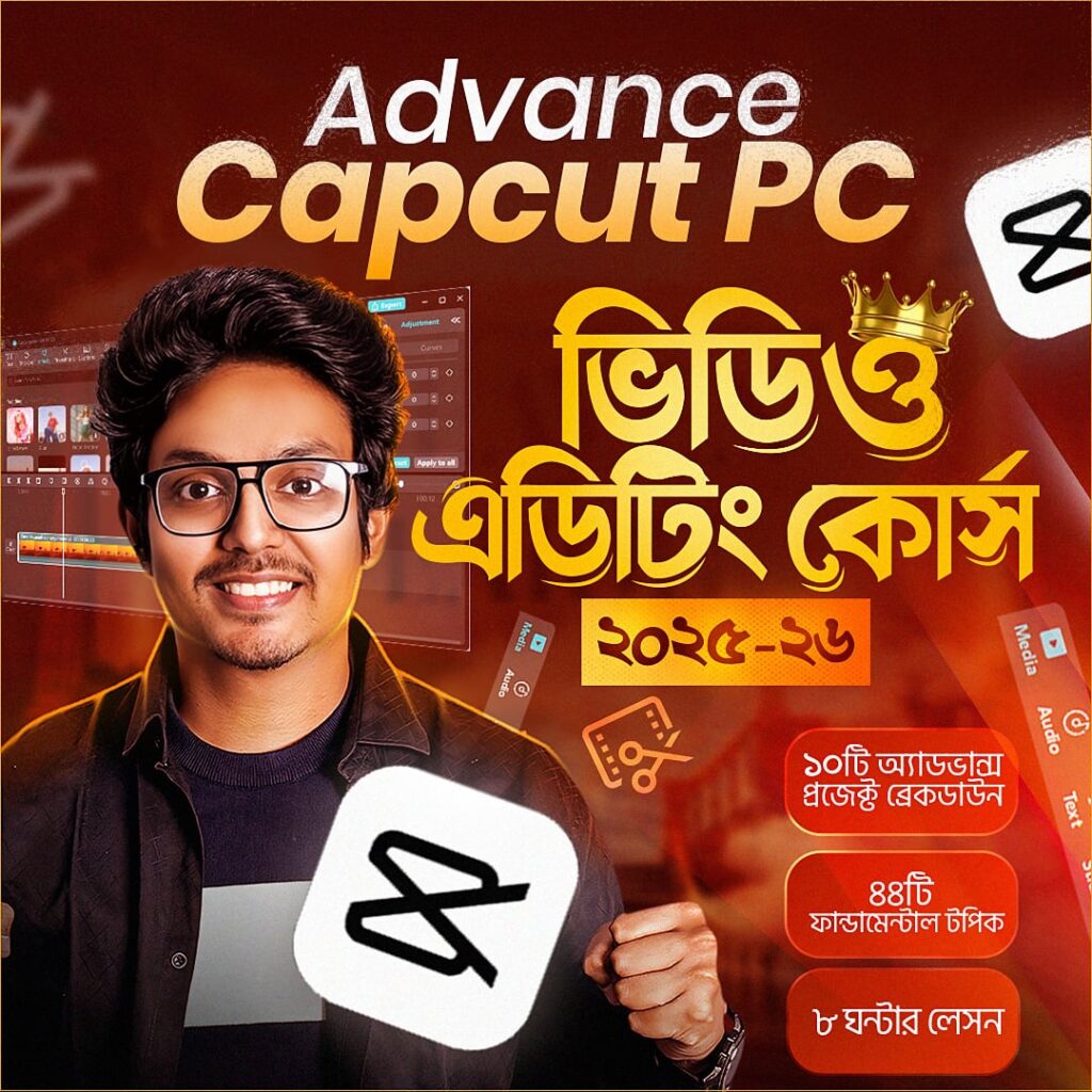 এই সময়ে এসে সবচেয়ে ডিমান্ডিং ২টি স্কিলের মধ্যে, ডিজিটাল মার্কেটিং এবং ভিডিও এডিটিং অন্যতম ! আমরা অনেকেই আছি আমাদের বিজনেসের প্রোডাক্ট প্রমোশন এর জন্য সুন্দর সুন্দর কনটেন্ট বানাতে চাই অথবা ইউটুব কিংবা ফেসবুকে কনটেন্ট ক্রিয়েশনের যাত্রা শুরু করতে চাই ! কিন্তু মাসের পর মাসের কঠিন সফটওয়্যার যেমন এর পিছে এত সময় দিতে চাইনা যেখানে Capcut PC দিয়েই প্রফেশনাল ভিডিও তৈরী করা যায়, যেটা আপনার ভিডিও এর Average Watch Duration এবং বিজনেসের কনভার্সন অনেক বাড়াতে পারে ! তাই আমি একজন প্রফেশনাল YouTube কনটেন্ট ক্রিয়েটর এবং ডিজিটাল মার্কেটিয়ার হিসেবে আমার ৮ বছরের অভিজ্ঞতার আলোকে কিভাবে সবচেয়ে কম সময়ে প্রফেশনালি Capcut Video Editing করা যায়, তা তুলে ধরেছি এই কোর্সে!